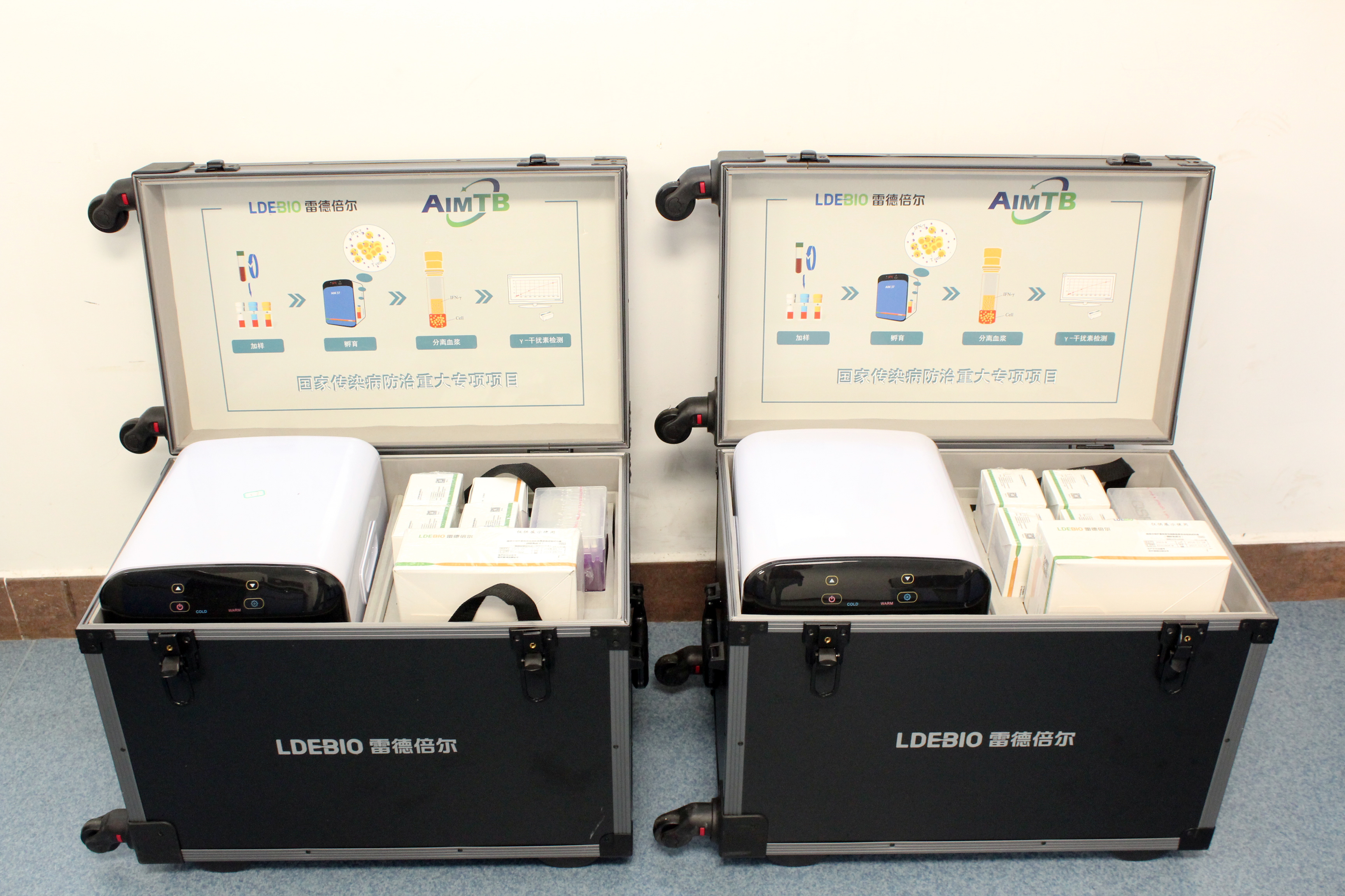 基于全免疫體外診斷核心技術(shù)平臺,雷德倍爾創(chuàng)新研發(fā)的AIMTB結(jié)核感染檢測系統(tǒng)已經(jīng)于2019年獲得國家藥監(jiān)局注冊批準(zhǔn)上市。AIMTB基于IGRA技術(shù),實(shí)驗(yàn)使用的結(jié)核分枝桿菌基因中含有特異性的RD1區(qū)域的ESAT-6和CFP-10兩個強(qiáng)免疫原性抗原。ESAT-6能避免所有BCG菌株及絕大部分環(huán)境分枝桿菌的干擾,CFP-10可強(qiáng)烈誘導(dǎo)50%-90%的結(jié)核病患者外周血單核細(xì)胞產(chǎn)生增殖反應(yīng)并分泌大量的IFN-γ,檢測結(jié)果具有相當(dāng)高的敏感性和特異性。